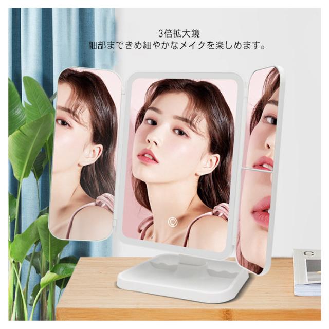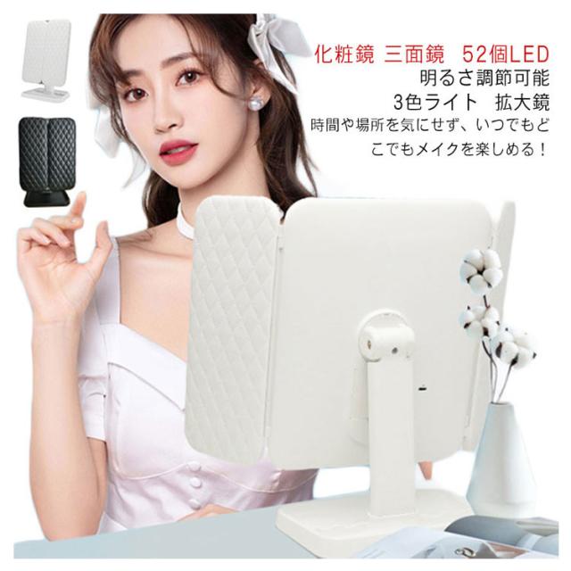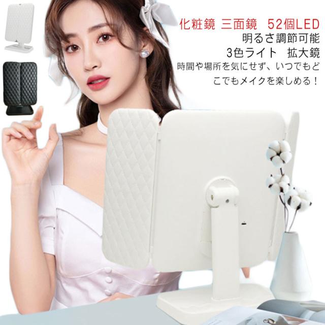 卓上 鏡 化粧鏡 52個LED 三面鏡 女優ミラー 化粧ミラー led付き 女優用ミラー 折りたたみ メイクミラー 化粧鏡