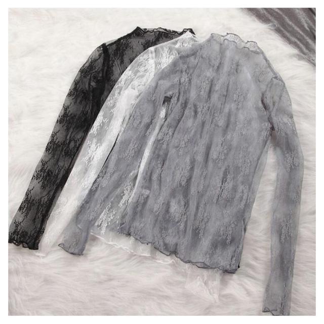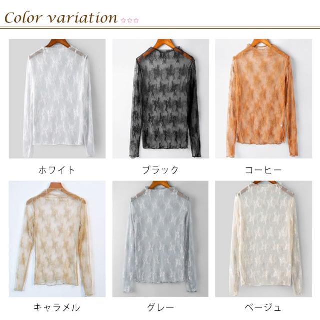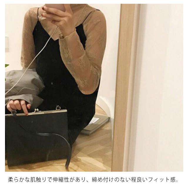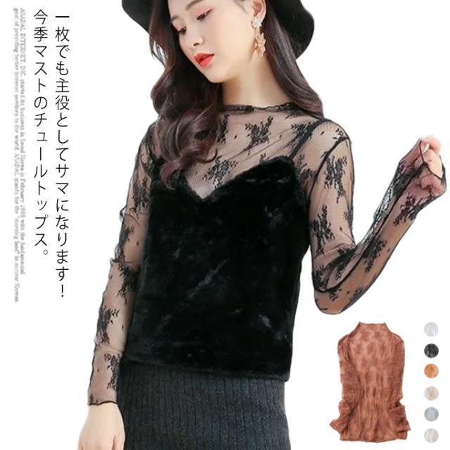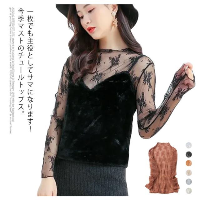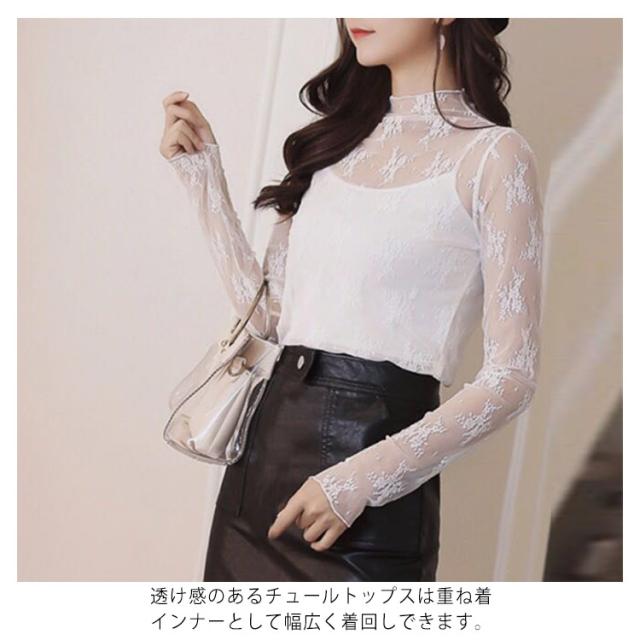 長袖 レディース チュールトップス レイヤード チュールトップス インナー 透け感 重ね着 ハイネック きれいめ 薄手 レース お洒落 カジュアル オールシーズン