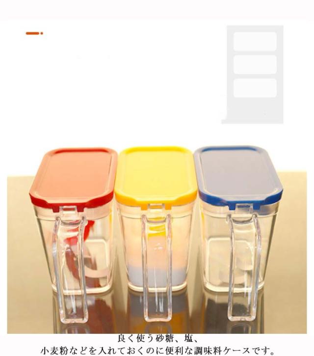 調味料容器 スパイス容器 保存容器 調味料ポット スプーン付き 490ml 透明 調味料ケース 塩入れ 調味料ポット 密閉 スリム 片手でオープン 簡単すり切り 湿気防止 衛生的 食洗機不可 送料無料 おしゃれ 砂糖