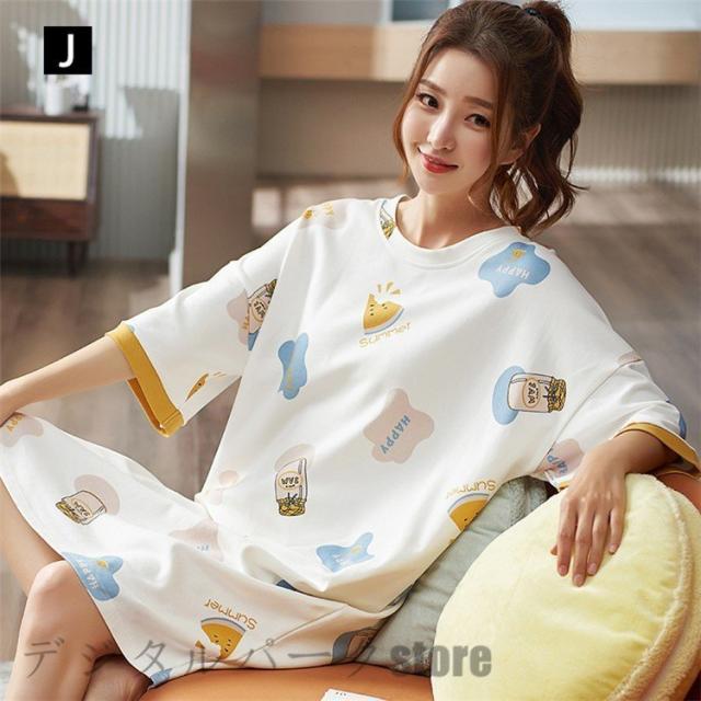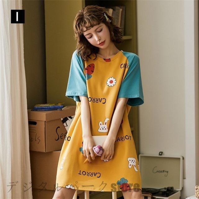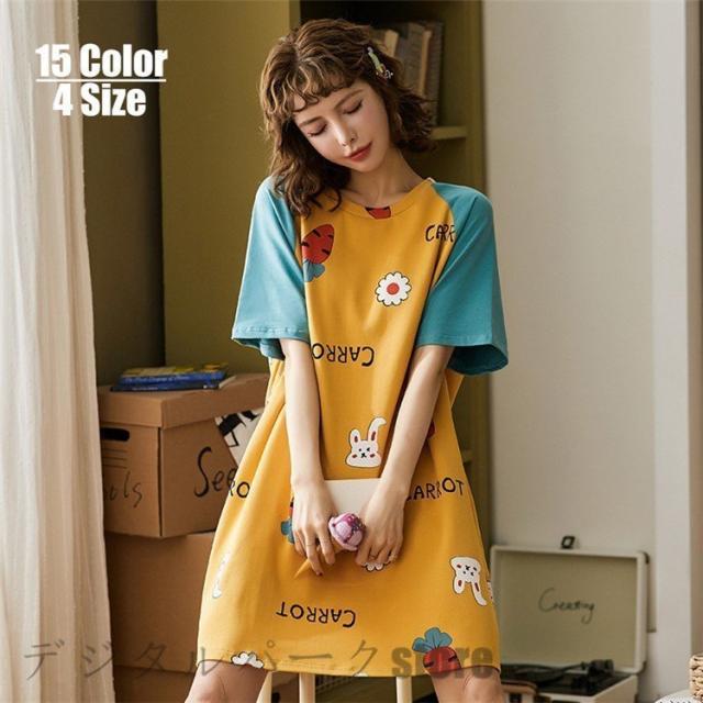 女性 可愛い パジャマ 夏 ルームウェア レディース パジャマ半袖 学生 ルームウェア ワンピース 綿 部屋着 寝巻き ランジェリー パジャマ 韓国風