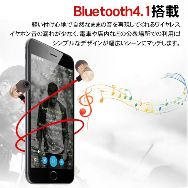 イヤホン ワイヤレスイヤホン 高音質 ブルートゥースイヤホン ノイズキャンセリング Bluetooth4.1 マグネット吸着 重低音 ワイヤレスイヤホン 両耳