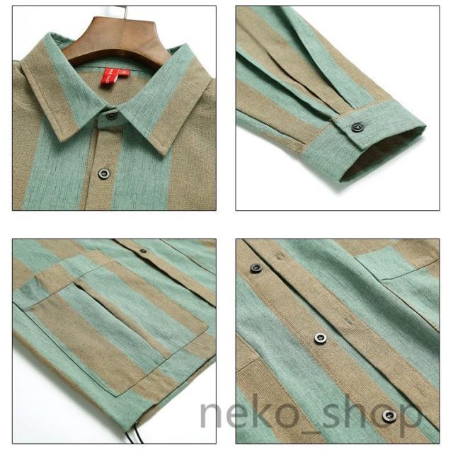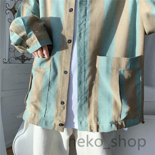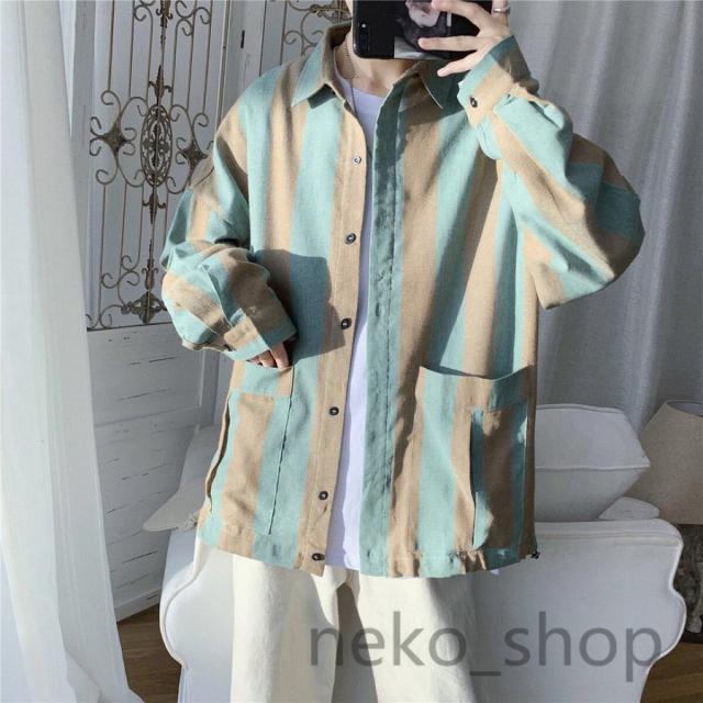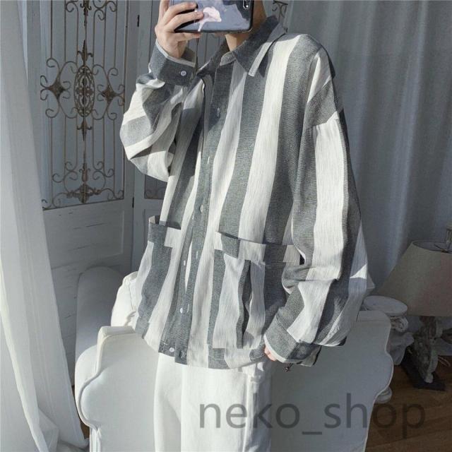 大人/学生 長袖 シャツ ボダンシャツ メンズ カジュアルシャツ ワイシャツ ゆったり ストライプシャツ 薄手 開襟 トップス 通勤 通学 男性 お兄系