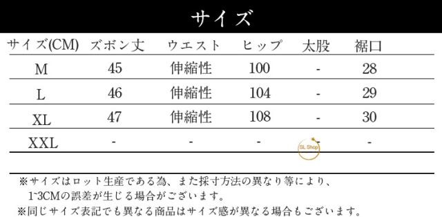 | サイズについての説明 | ショートパンツ レディース ルームウェア 短パン ショーパン スポーツ 夏 無地 ポケット ウエストゴム ボトムス ※エコの為、簡易包装でございます。 ※サイズはロット生産である為、1~3CMの誤差が生じる場合がございます。 ※画像の商品はサンプルです。実際の商品と生産ロットによって色味、仕様、加工、サイズ、素材等が若干異なる場合がございます。 ※機械による生産過程において、どうしても生地を織る際の糸の継ぎ目や多少のほつれ、または色ムラなどが生じている場合がございます。 ※出荷の際にパッキング及び物流運送の都合により多少シワがつく場合がございます。 |