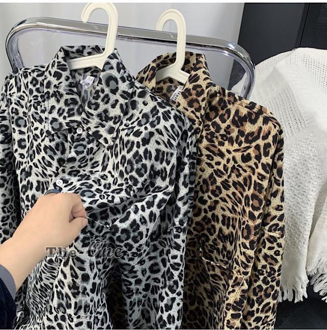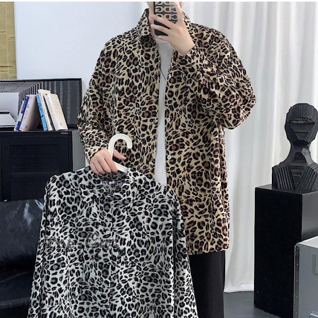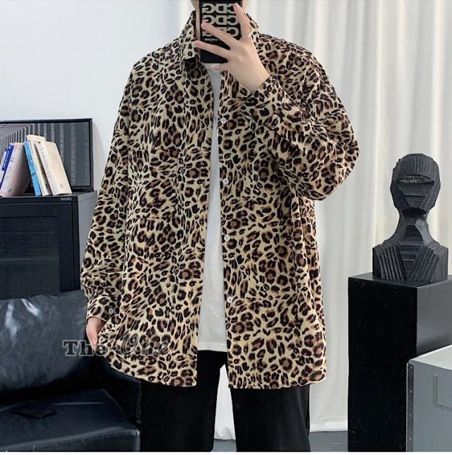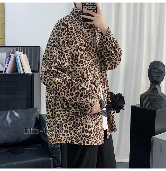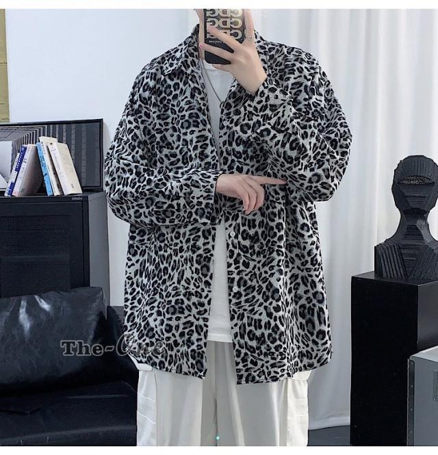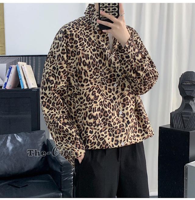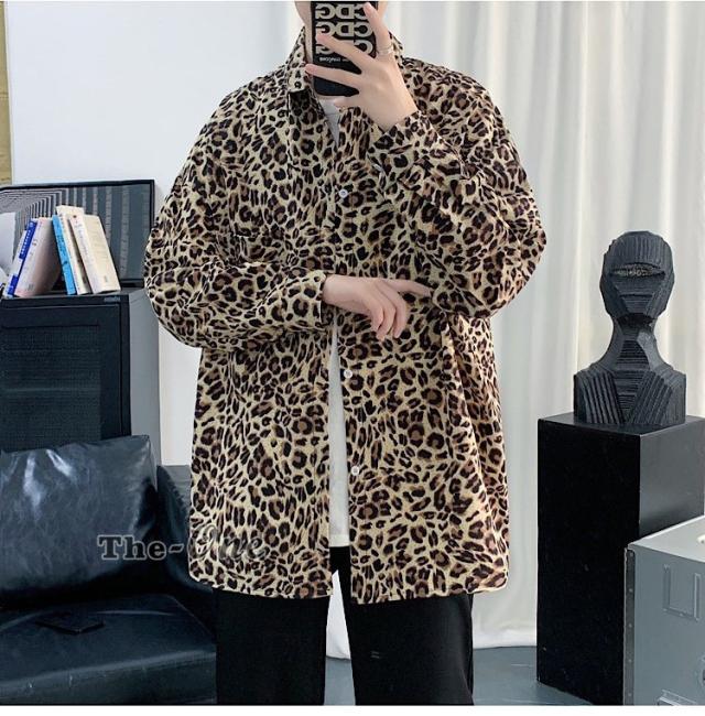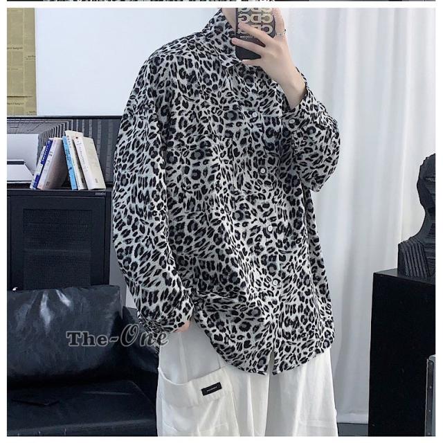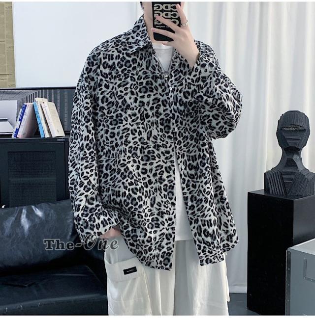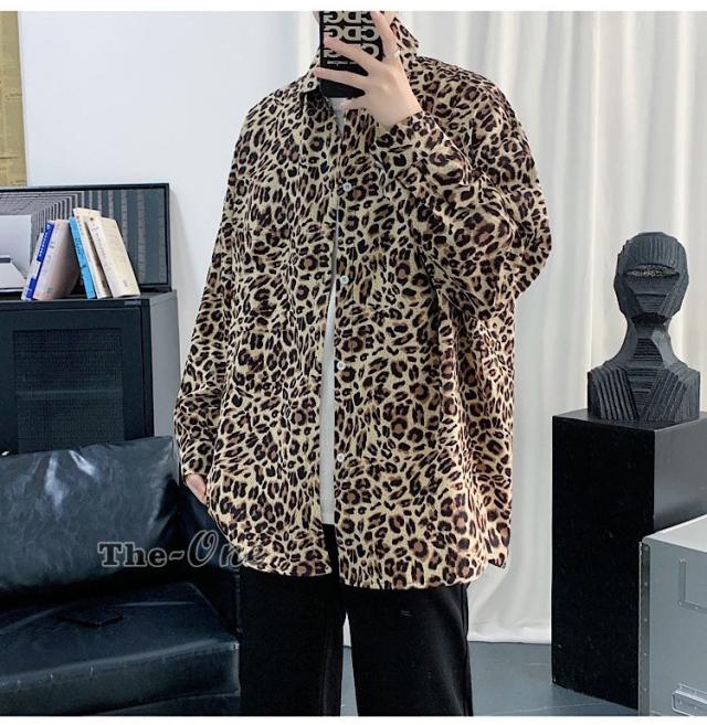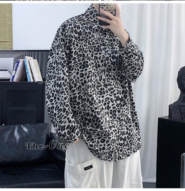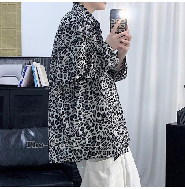 カジュアルシャツ 総柄シャツ 長袖シャツ カジュアルシャツ ヒョウ柄 アニマル柄 韓国ファッション 春服
