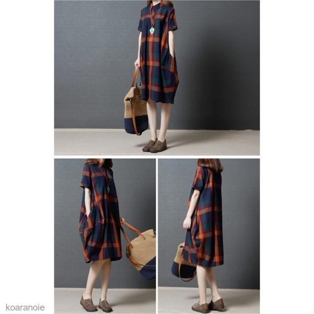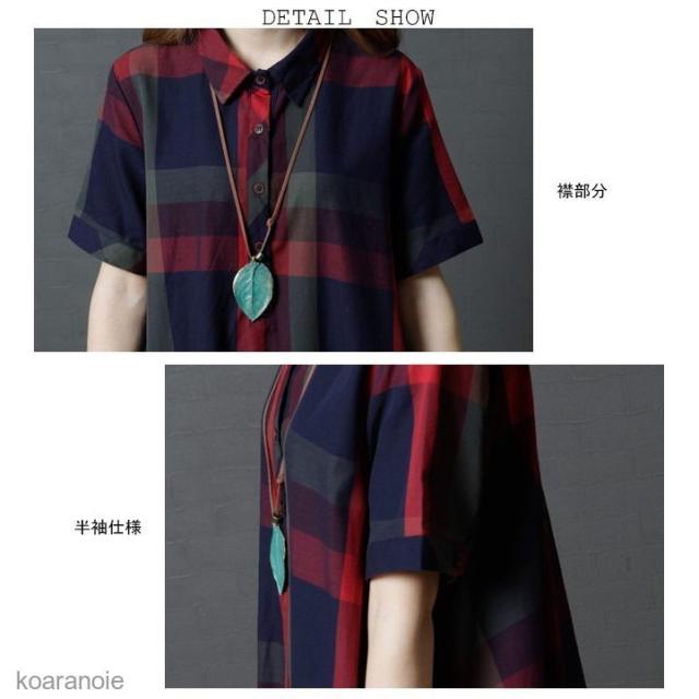 半袖ワンピース ゆったり チェック柄 カジュアル 半袖 ひざ丈ワンピース 半袖ワンピース シャツワンピ ミディアム丈 シャツワンピース 薄手