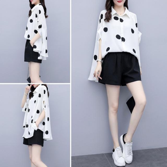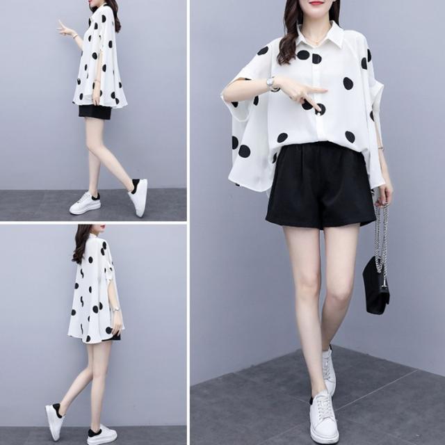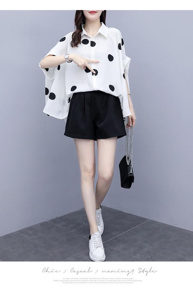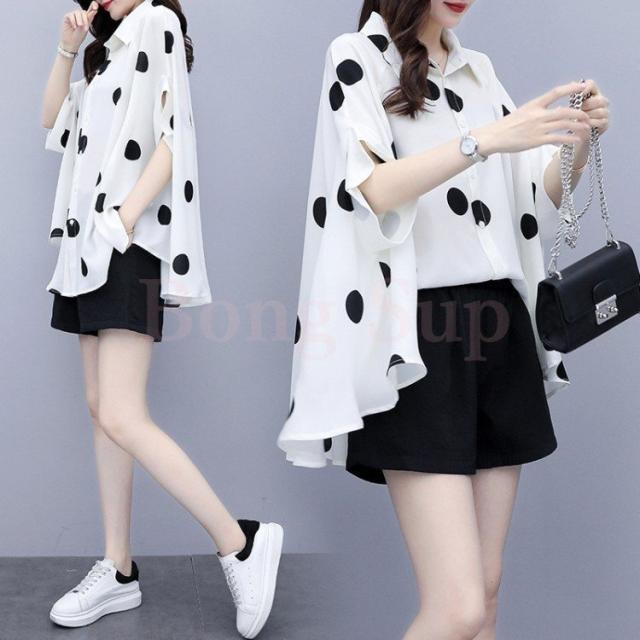 レディース セットアップ セットアップ ショットパンツ ドット柄 2点セット セットアップ 半袖 大きいサイズ 通勤 OL オシャレ 大人