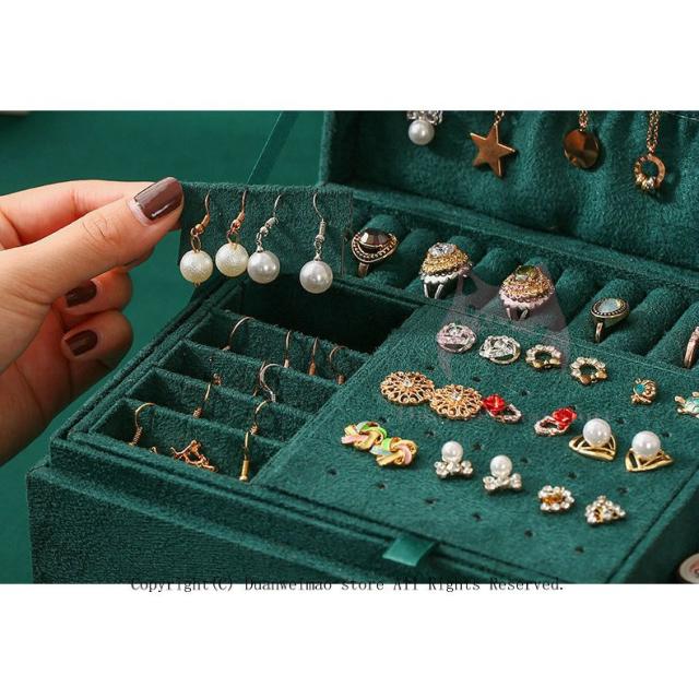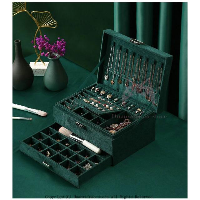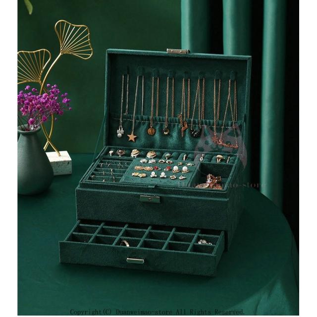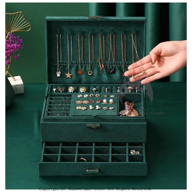 大容量 可愛い フェルト 鍵付き ジュエリーボックス おしゃれ 三段 アクセサリーボックス ジュエリーケース アクセサリーケース グリーン 緑 保管