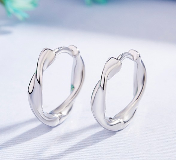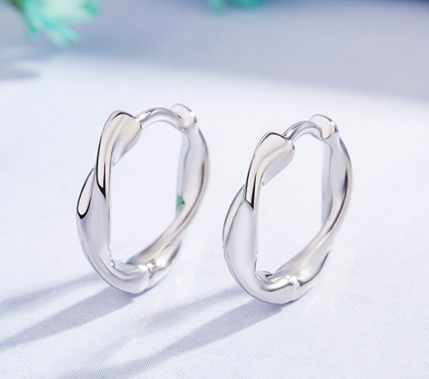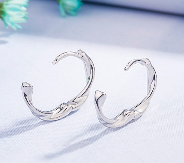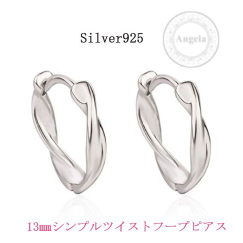 ピアス メタル レディース フープ ループ ツイスト カーブ シルバー925 中折れリング13mm