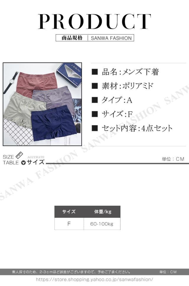 メンズ ストレッチ ボクサーパンツ 男性下着 4点セット インナー シンプル メンズインナーパンツ 男性 ショーツ 下着