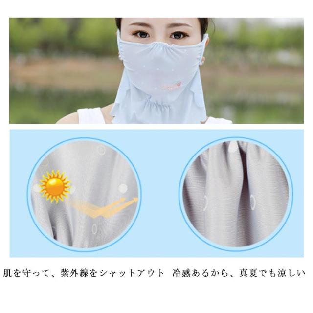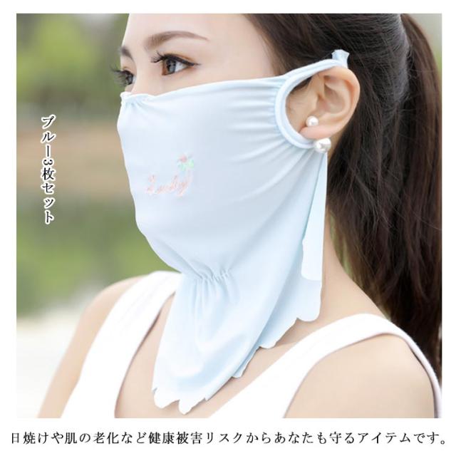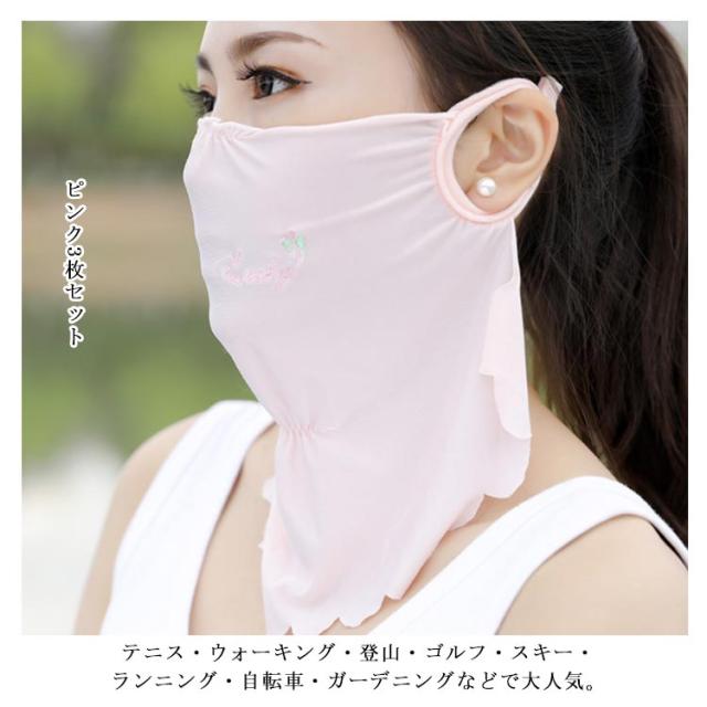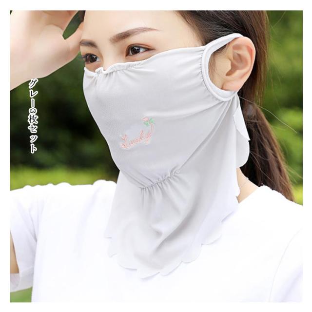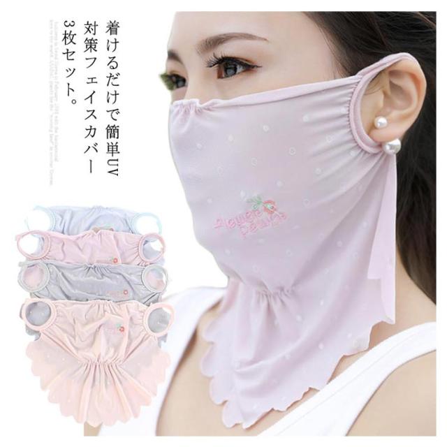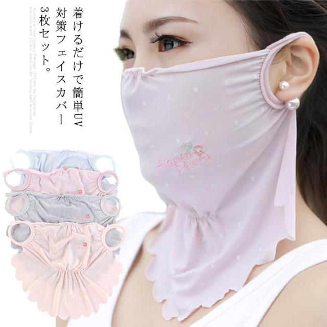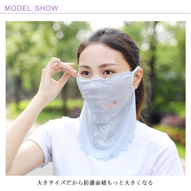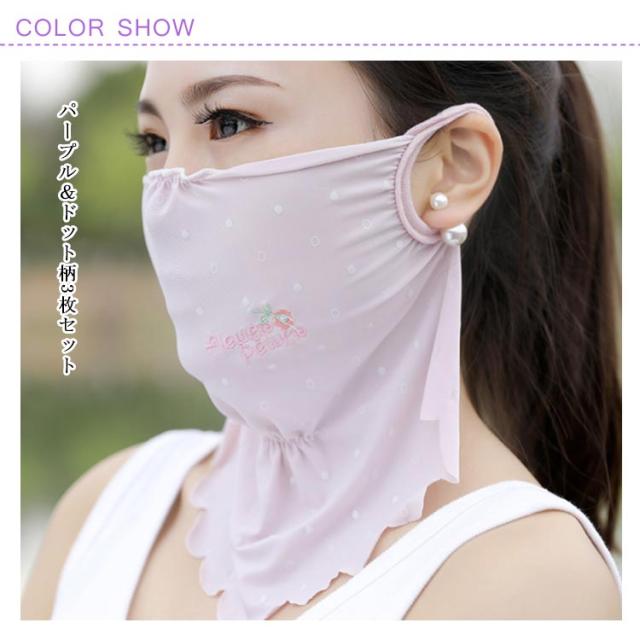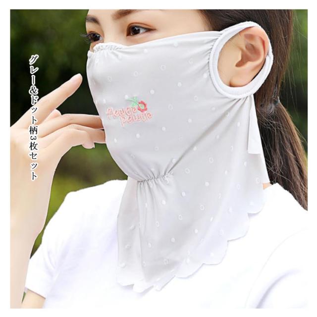 マスク 紫外線対策グッズ 刺繍入り 顔や首の日焼け防止・日焼け対策に ドット柄 かわいい