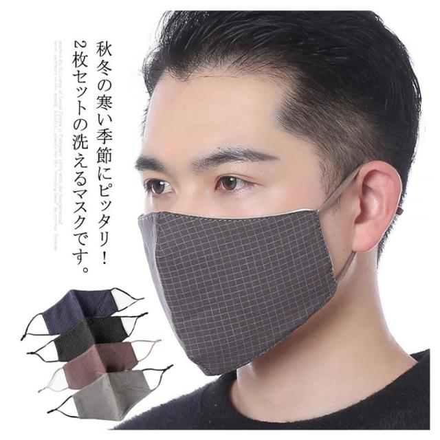 マスク 洗える 予防対策 2枚セット 防寒 秋冬用 アウトドア 防塵 立体タイプ 防風 送料無料 通勤 メンズ 保温 チェック柄 ビジネス