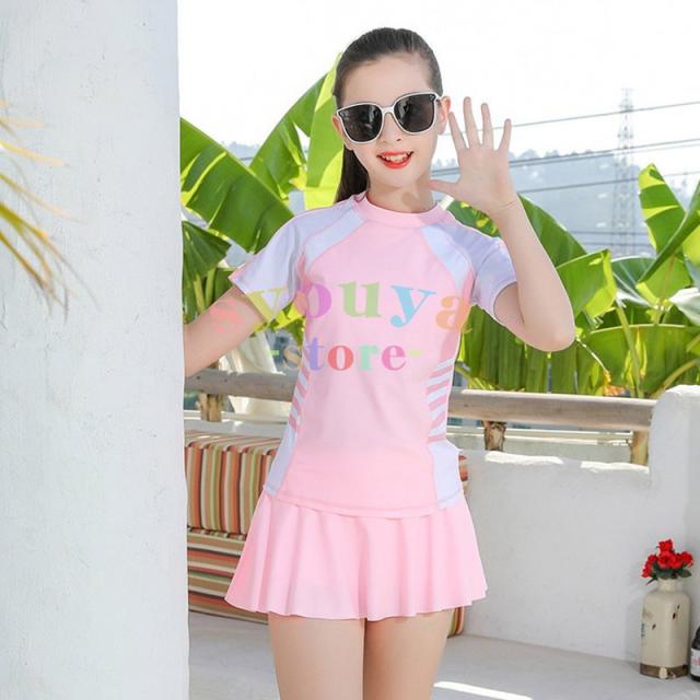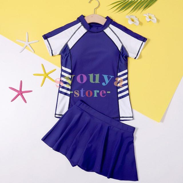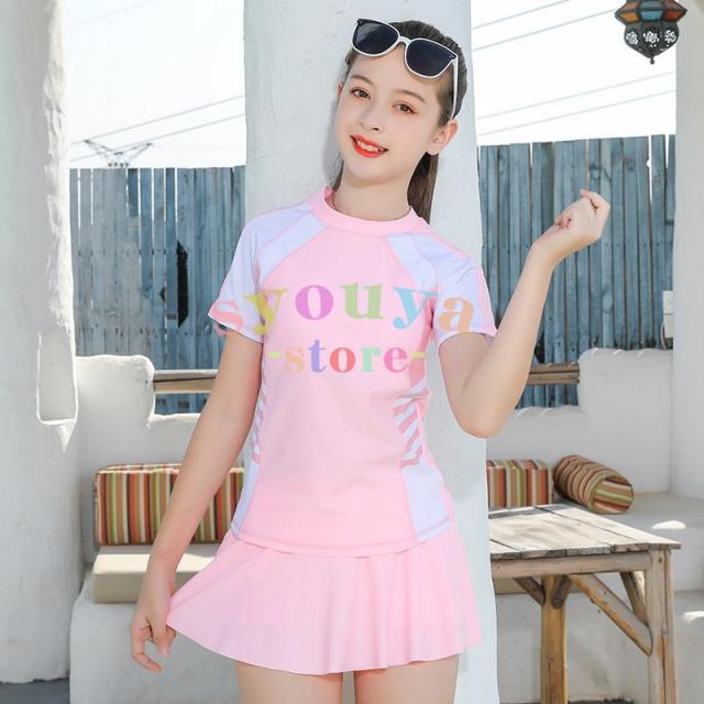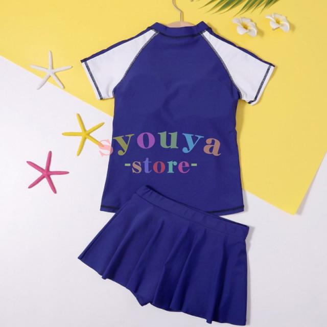 セパレート キッズ 長袖トップス キッズ 水着 ジュニア 2点セット 子供 スカート風パンツ スイムキャップ 女の子 体型カバー 海水浴