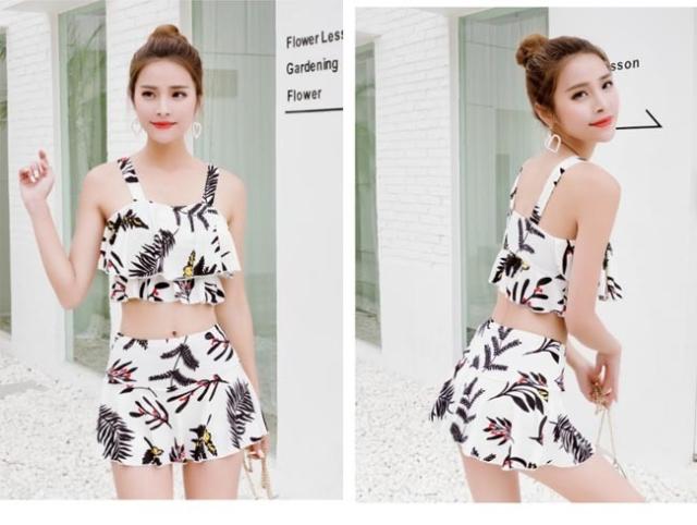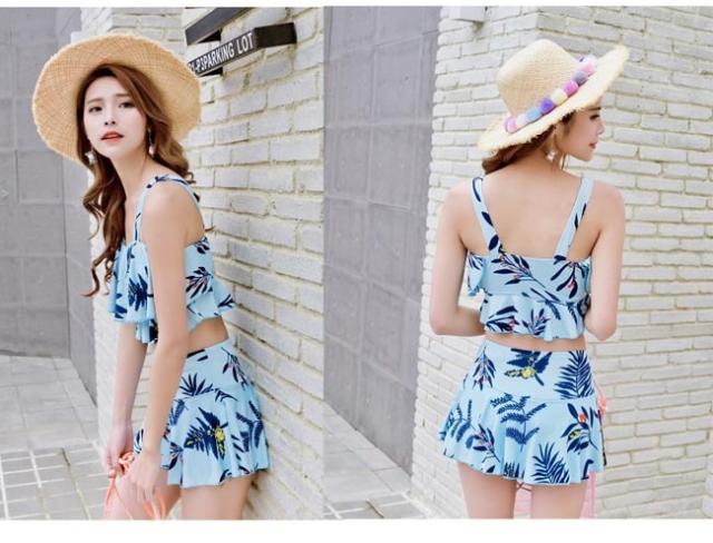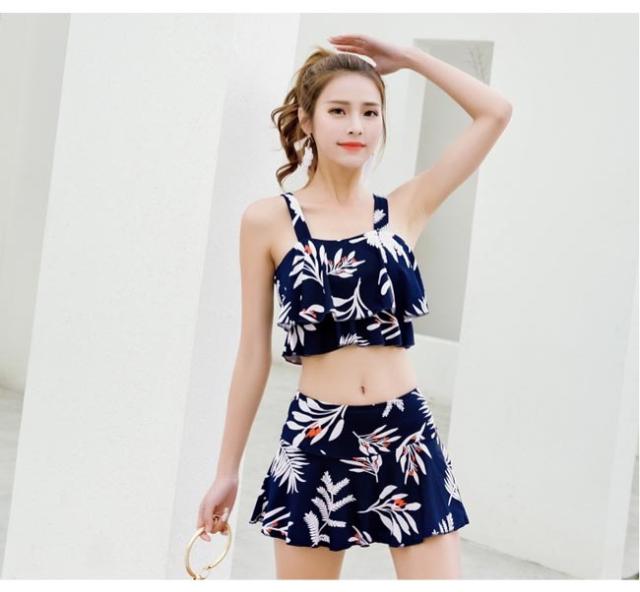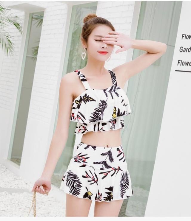 ビーチウェア タンキニ レディース スイムウェア 水着 バストアップ 体型カバー ビキニ 花柄 水泳服 スイミング 水着 上下2点セット