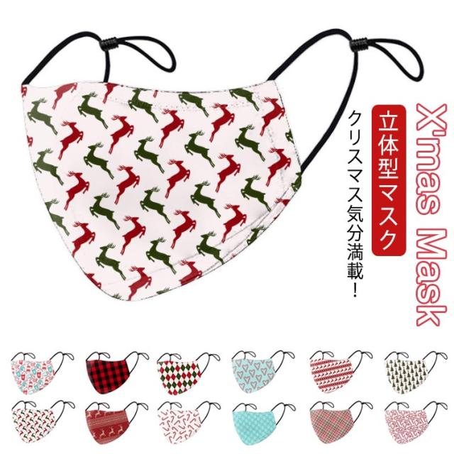 送料無料 男女兼用 クリスマス柄 雪柄 クリスマス マスク マスク マスク 洗える マスク イベント用 立体型 送料無料 サンタ トナカイ クリスマスツリー柄 パーティー