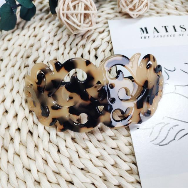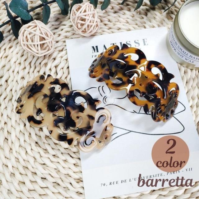 べっこう柄風 髪留め ヘアアクセサリー バレッタ レディース 透かし彫り風 マーブル模様 髪飾り まとめ髪 ヘアアレンジ おしゃれ 大人かわいい