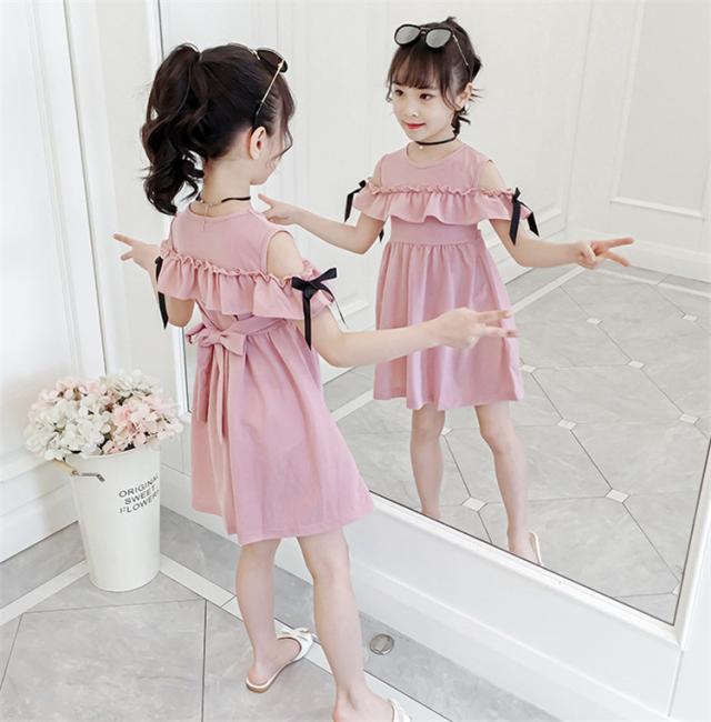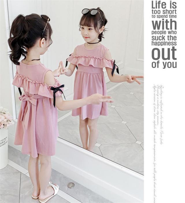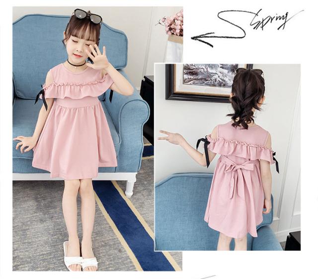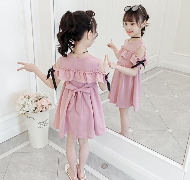 160 キッズ 肩出し 韓国子ども服 子供服 ピンク 女の子 夏服 半袖ワンピース 結婚式 子供ドレス 子供服 誕生日 ジュニア ベビー服 お姫様 おしゃれ
