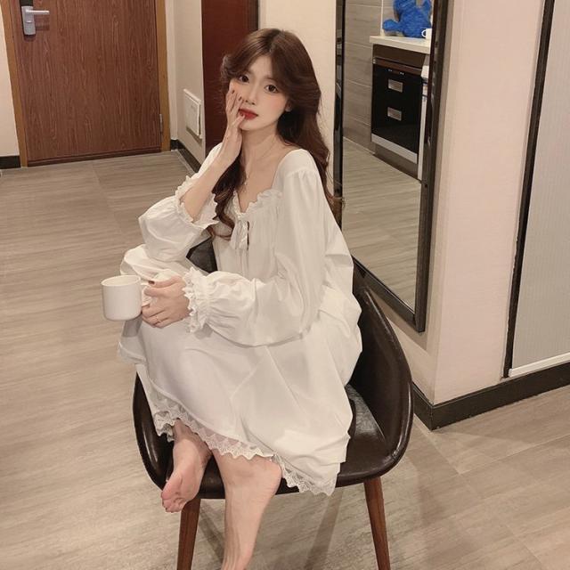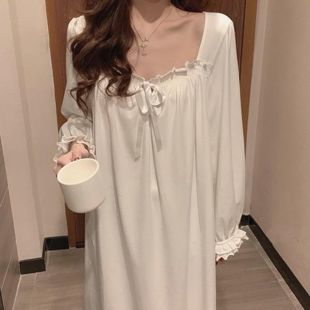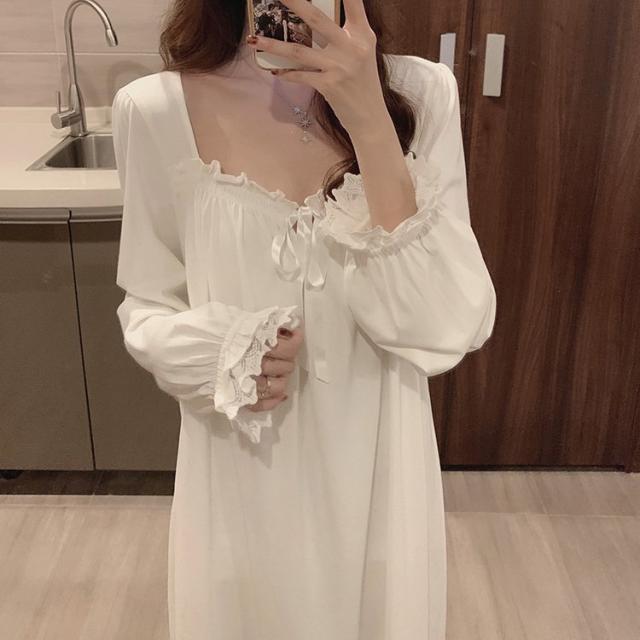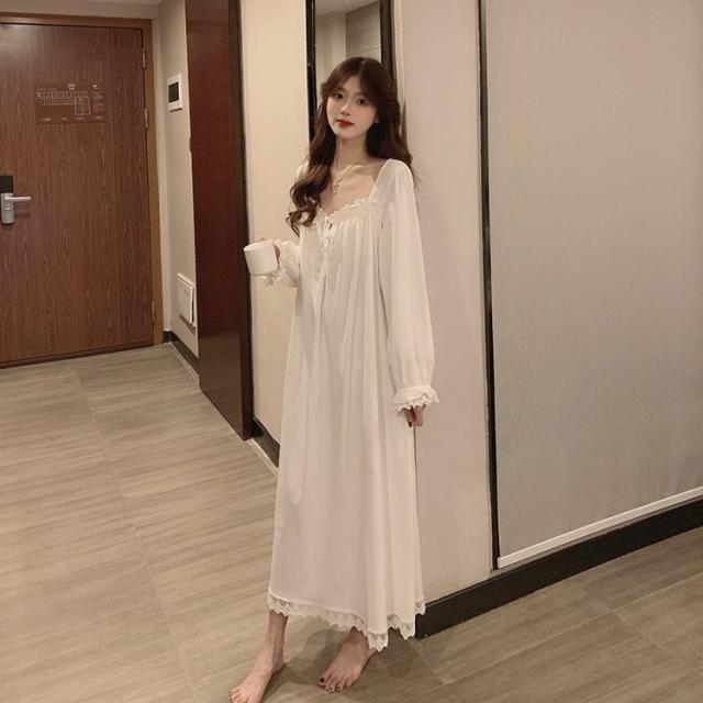 白ワンピース ネグリジェ ネグリジェ レースネグリジェ 春夏秋 ネグリジェ ロング丈 長袖 ネグリジェ パジャマ レディース 大人可愛い部屋着