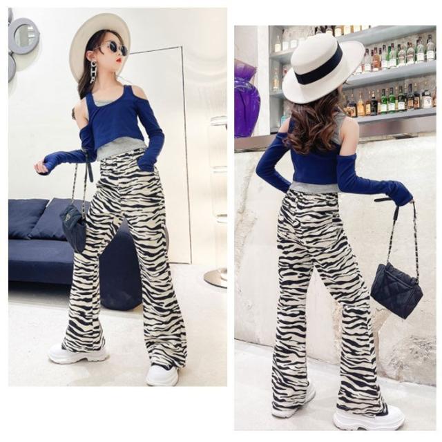 お洒落 ワイドレッグパンツ ヒョウ柄 子供服 女の子 ストリートダンス ボトムス 長ズボン 子供服 ファッション ヒップホップ コーデ ファッション