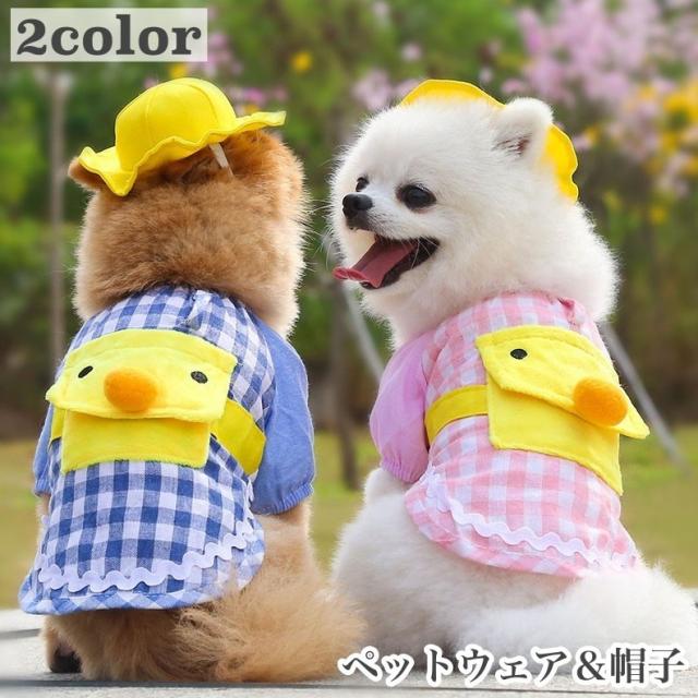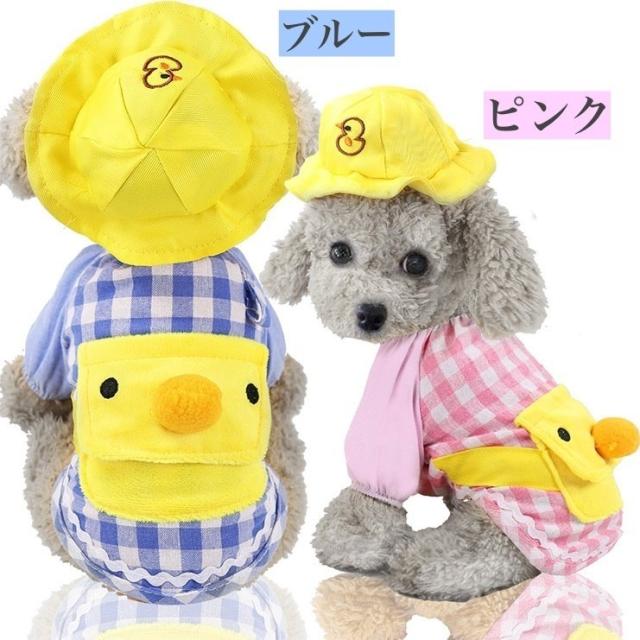 犬用 ドッグウェア ペットウェア コスチューム 幼稚園児 帽子付き 猫用 洋服 コスプレ 格子柄 チェック柄 袖あり アヒル ひよこ おしゃれ
