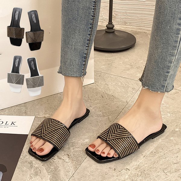 歩きやすい ぺたんこ サンダル 無地 ローヒール ビジュー 春 夏 サンダル シューズ 靴