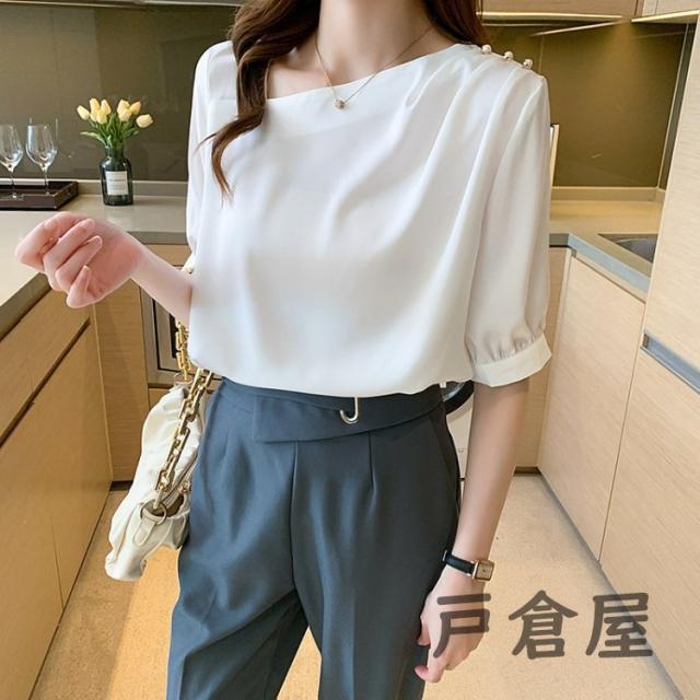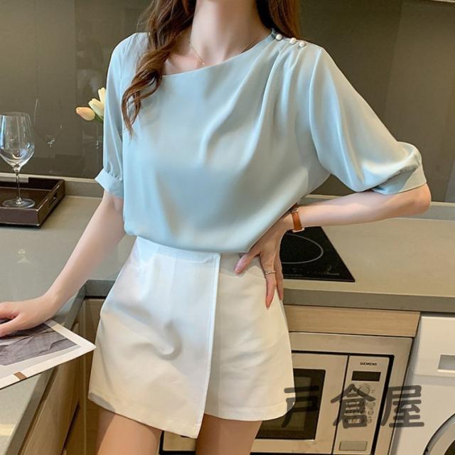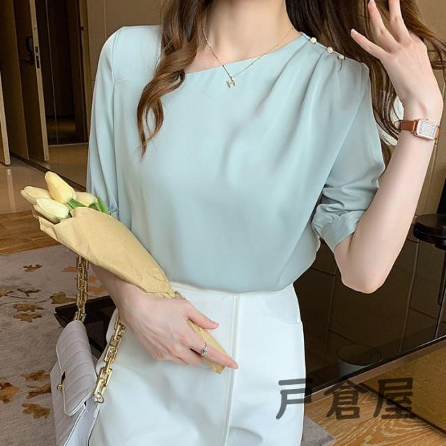 ブラウス 韓国風 シフォンシャツブラウス シャツブラウス 半袖 オフィス 春夏 シフォン ブラウス オシャレトップス 通勤 OL 大人