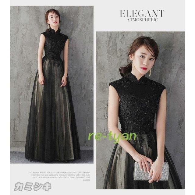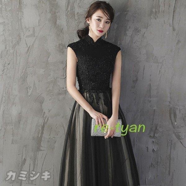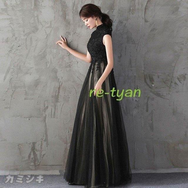 大人 エレガント 上品 ロングドレス フォーマルドレス黒 パーティードレス 大人 ロングドレス 演奏会ワンピース 20代30代40代 同窓会 aライン 成人式発表会