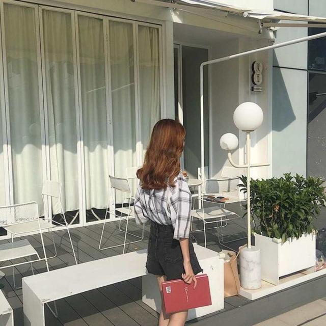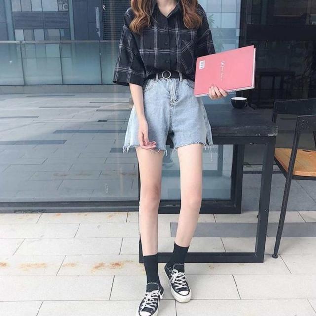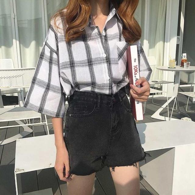 モノトーンチェック ビッグシャツ レディース 半袖シャツ 韓国ファッション ベルシー