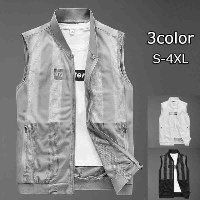 ベスト メッシュベスト 春夏 カジュアル ゆったり ベスト ノースリーブ おしゃれ トップス 立ち襟 薄手 通気性 メンズ ジレ ベスト 前開き スポーツ