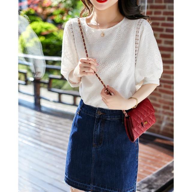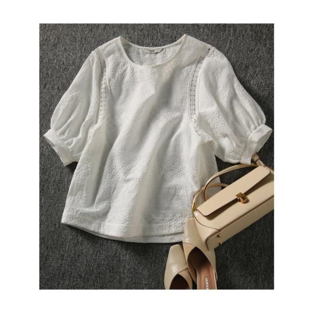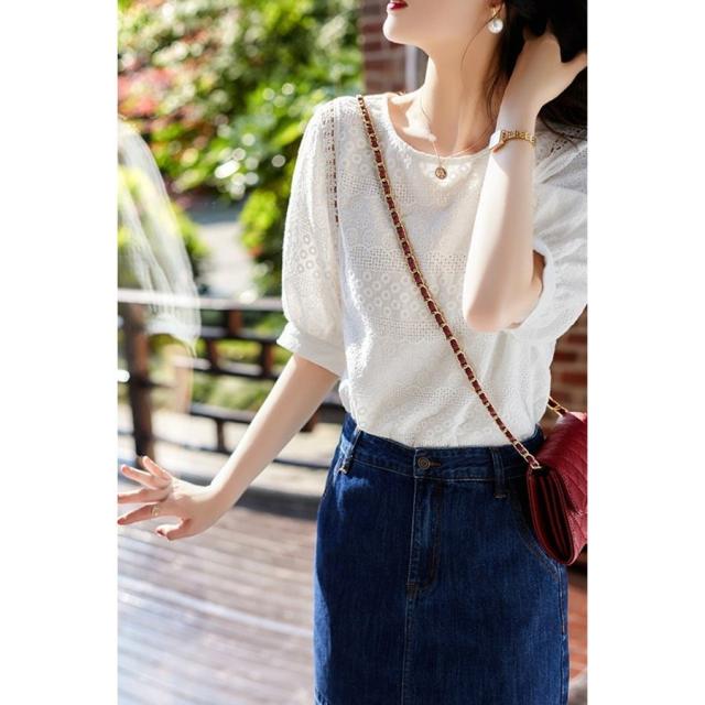 ブラウス きれいめ 40代 レディース ゆったり 上品 レース花刺繍ブラウス 白シャツ 五分袖 ブラウス オシャレ 韓国風 大人 Tシャツ30代
