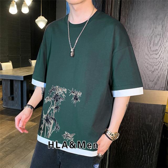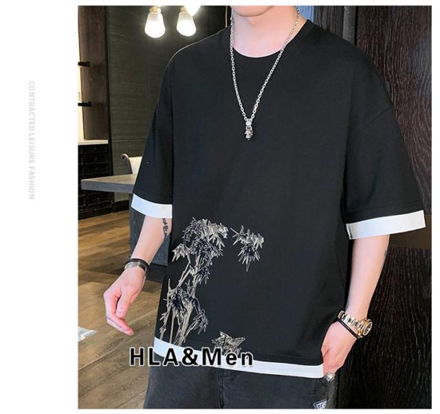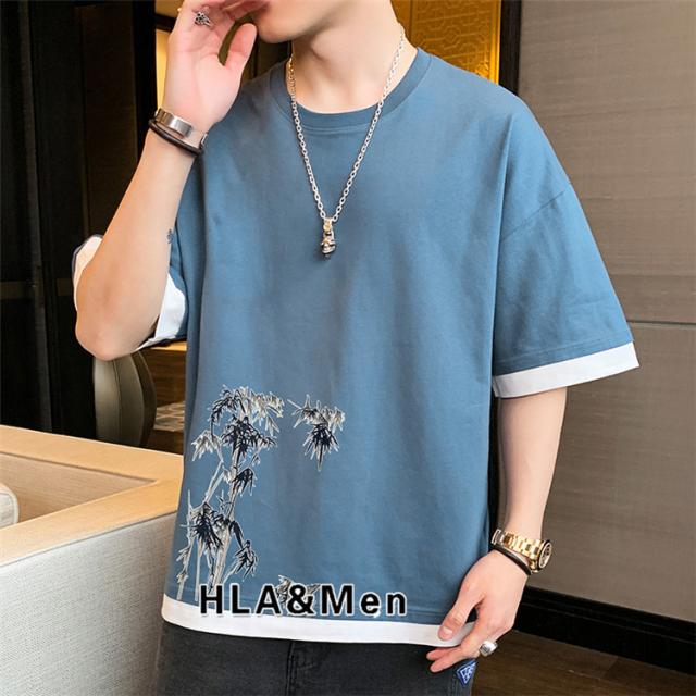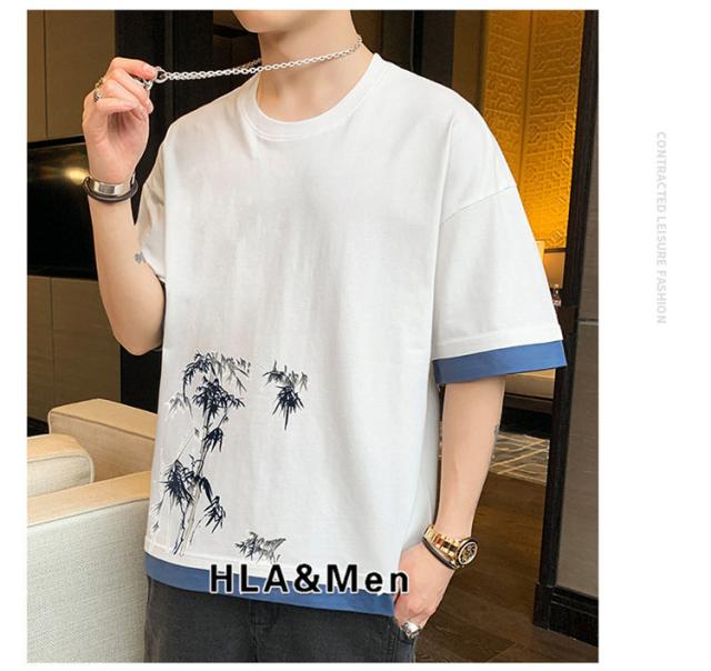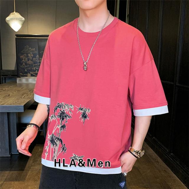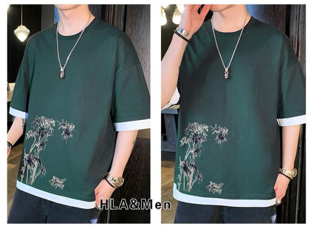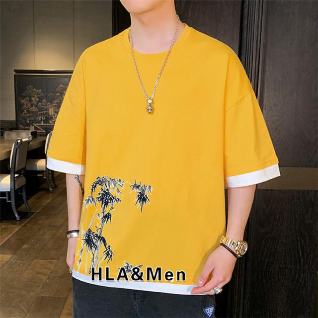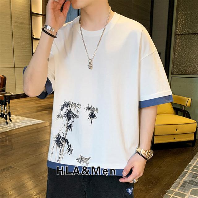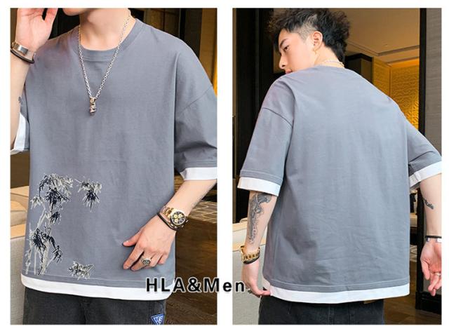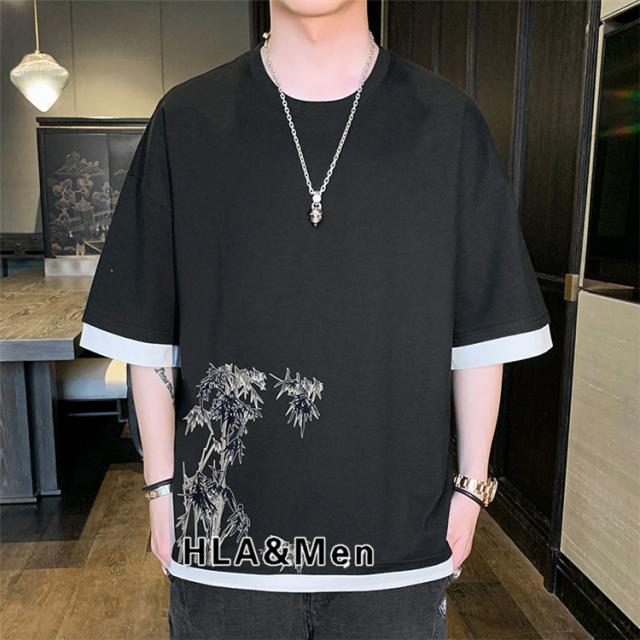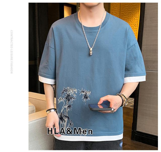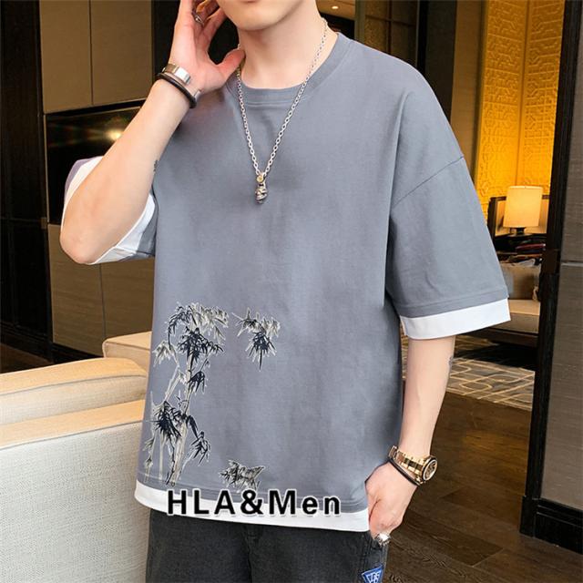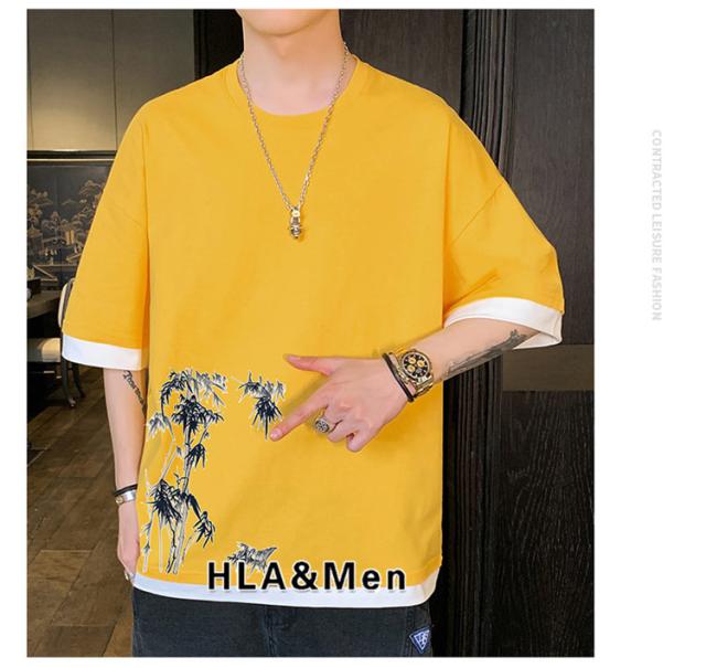 夏 メンズ 重ね着風 クルーネック プリントTシャツ 半袖Tシャツ トップス カジュアルTシャツ