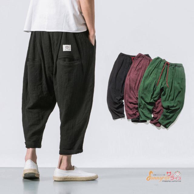 サルエルパンツ サルエルパンツ 麻 サルエル ワイドパンツ リネンパンツ イージーパンツ リネン メンズ 夏 YAA 2021