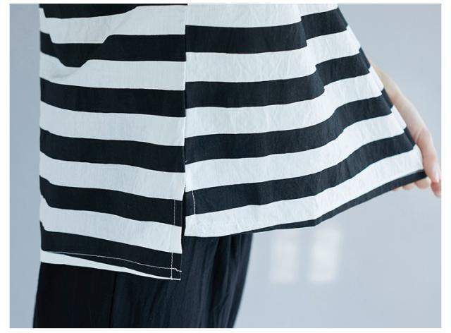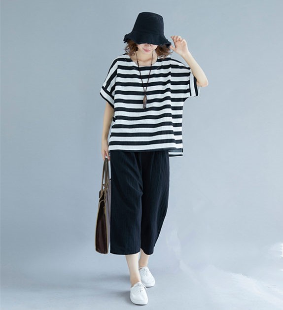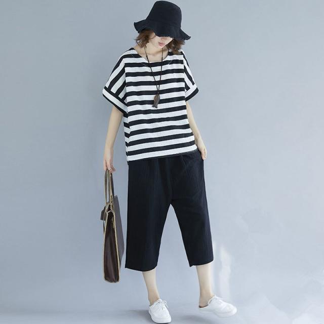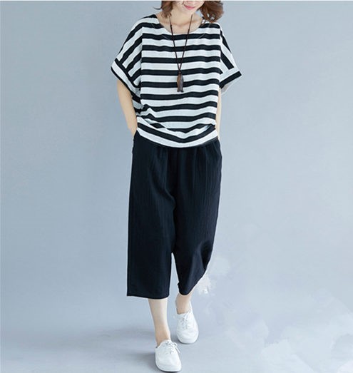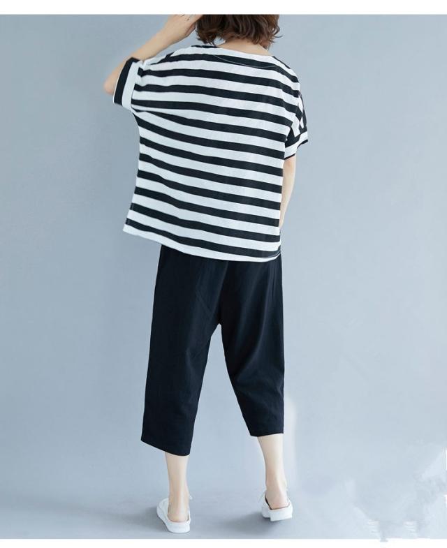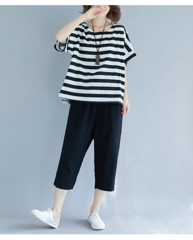セットアップ レディース 七分丈 森ガール パンツ サルエルパンツ ボーダーTシャツ 体型カバー ゆたり 大きいサイズ カジュアル