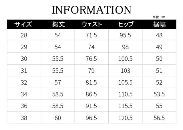 | サイズ | 28 29 30 31 32 34 36 38 |