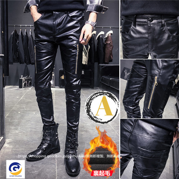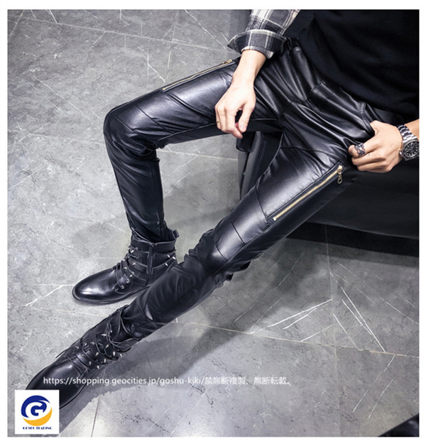 ライダースパンツ パンツ フェイクレザーペンシルパンツ 革ジャン メンズ お兄系 革パンツ 皮パンツ スキニーパンツ パンツ スリム
