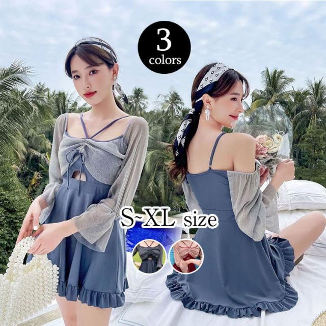 レディース 小胸 水着 体型カバー 夏 バンドゥ ママ水着 リゾート パッド付き 水着 UVカット パレオ 海水浴 潜水 韓国風 可愛い 20代 30代