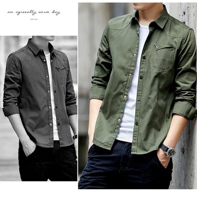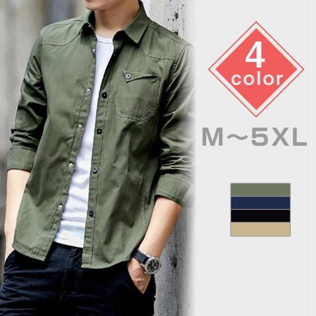 春秋 長袖 メンズ カジュアル シャツ ミリタリー Vネック Tシャツ トップス シャツ コットン おしゃれ シャツ 5color