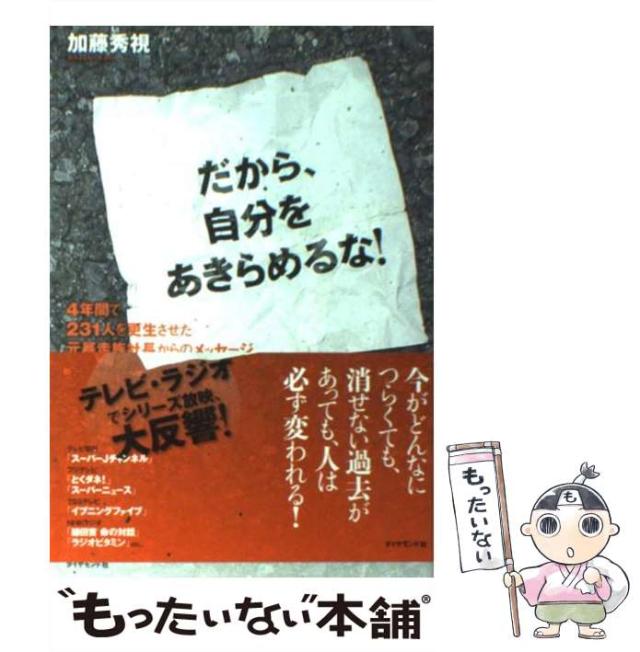 商品名:【中古】 だから、自分をあきらめるな! 4年間で231人を更生させた元暴走族社長からのメッセージ / 加藤秀視 / ダイヤモンド社 [単行本(ソフトカバー)]【メール便送料無料】