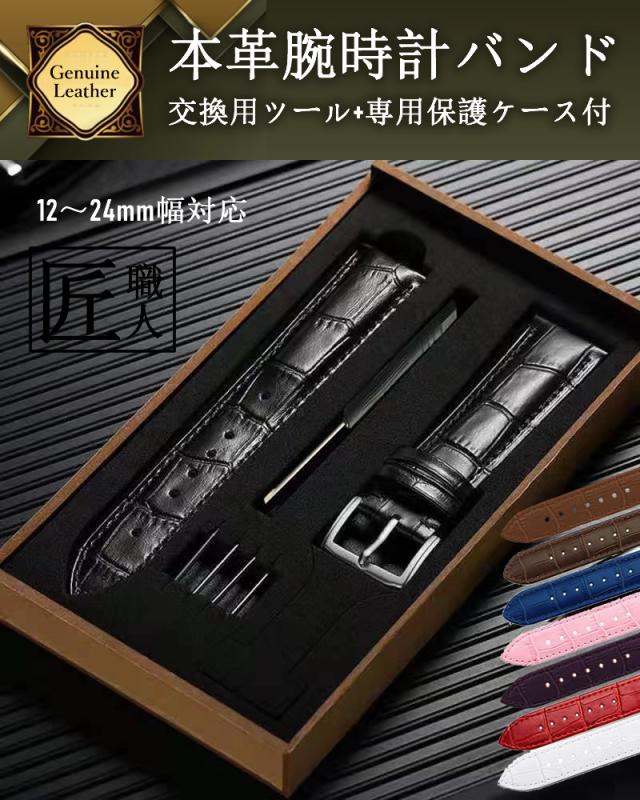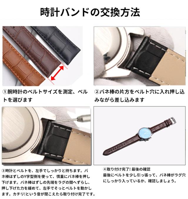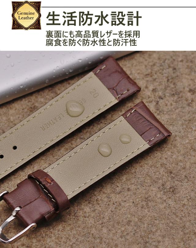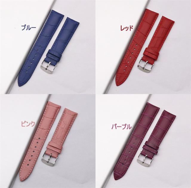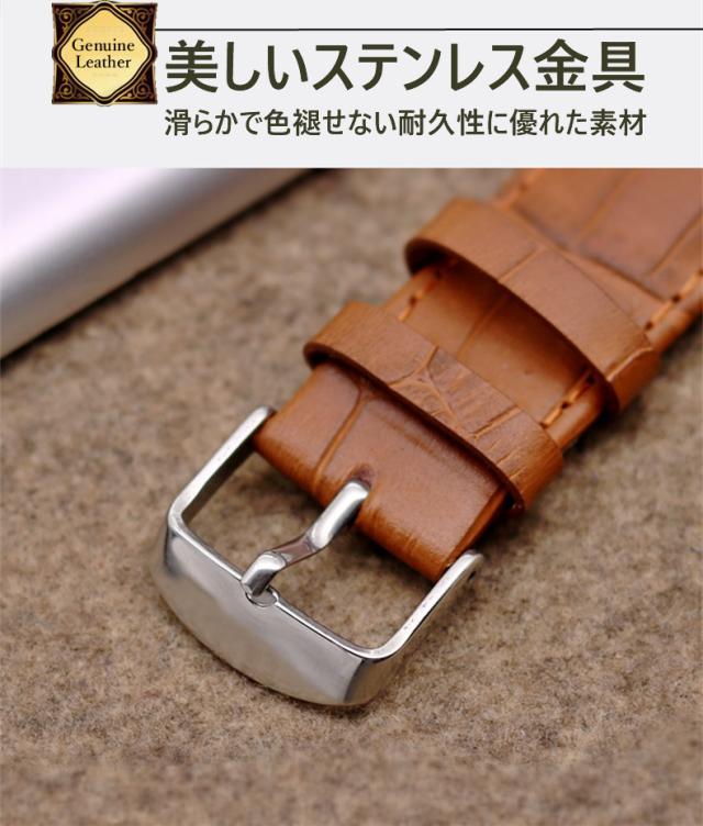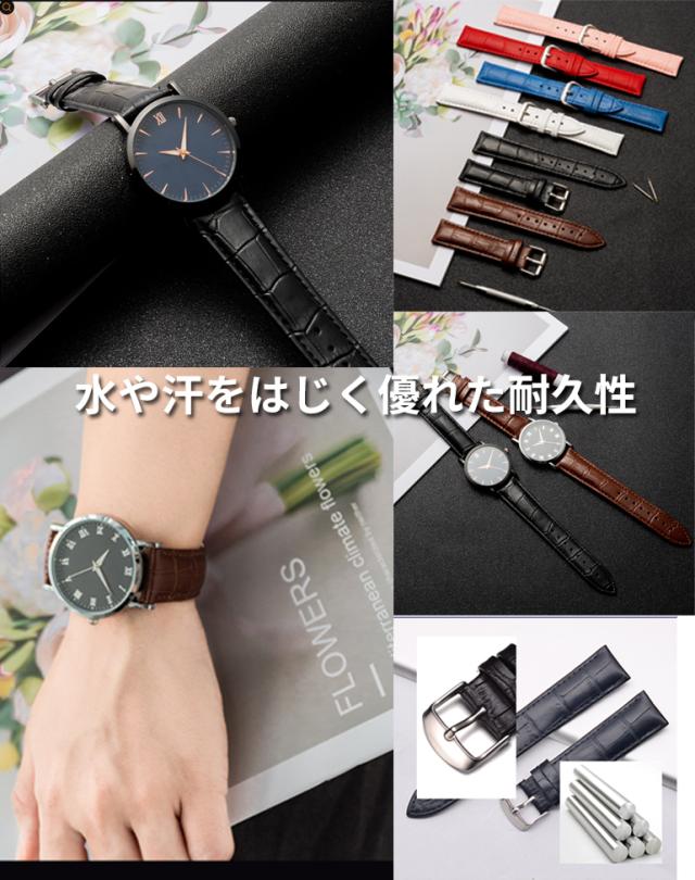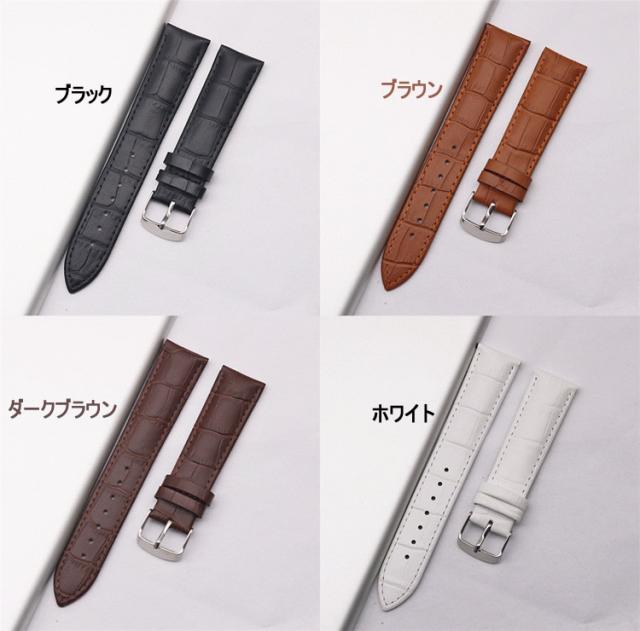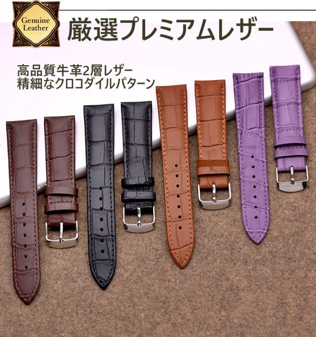 腕時計ベルト 牛革 レザー 時計ベルト バンド クロコダイル型押し 革ベルト 薄め バネ棒・交換工具付 時計バンド メンズ レディース