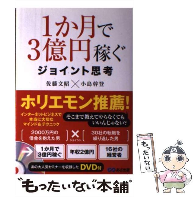 商品名:【中古】 1か月で3億円稼ぐジョイント思考 / 小島幹登 佐藤文昭 / あさ出版 [単行本(ソフトカバー)]【メール便送料無料】