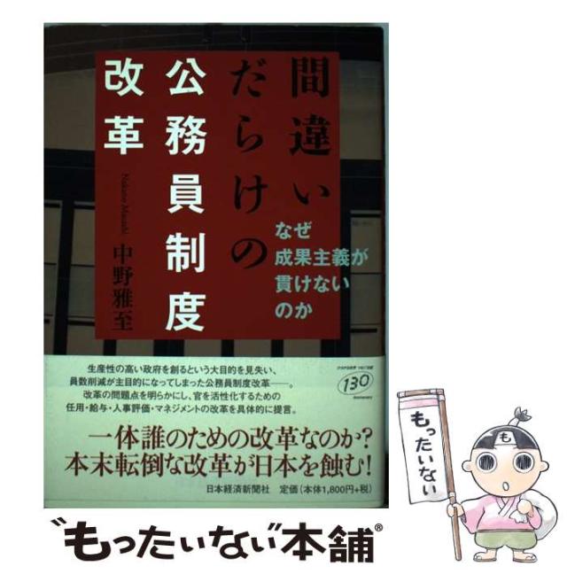 商品名:【中古】 間違いだらけの公務員制度改革 なぜ成果主義が貫けないのか / 中野 雅至 / 日本経済新聞社 [単行本]【メール便送料無料】