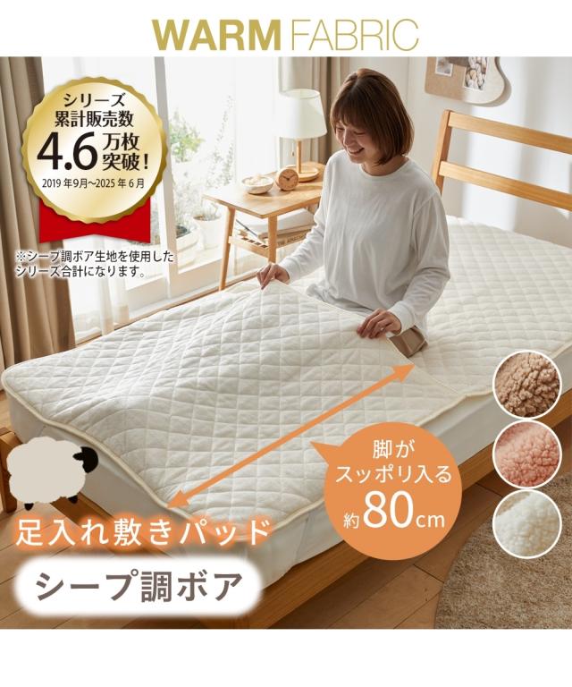 モコモコのシープ調ボアがとってもあたたか!まるで羊に包まれているようなふわふわでモコモコの肌ざわりの敷きパッドに足入れタイプが新登場!足元の冷えが気になる方にお勧めのタイプです。