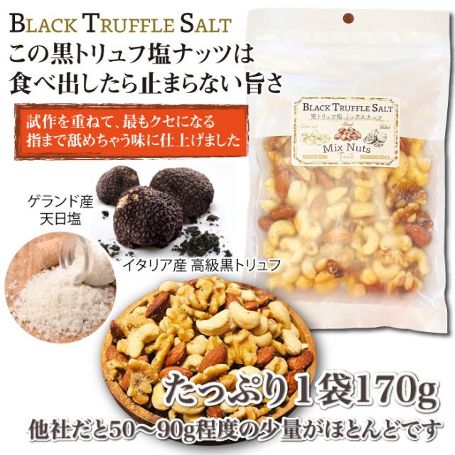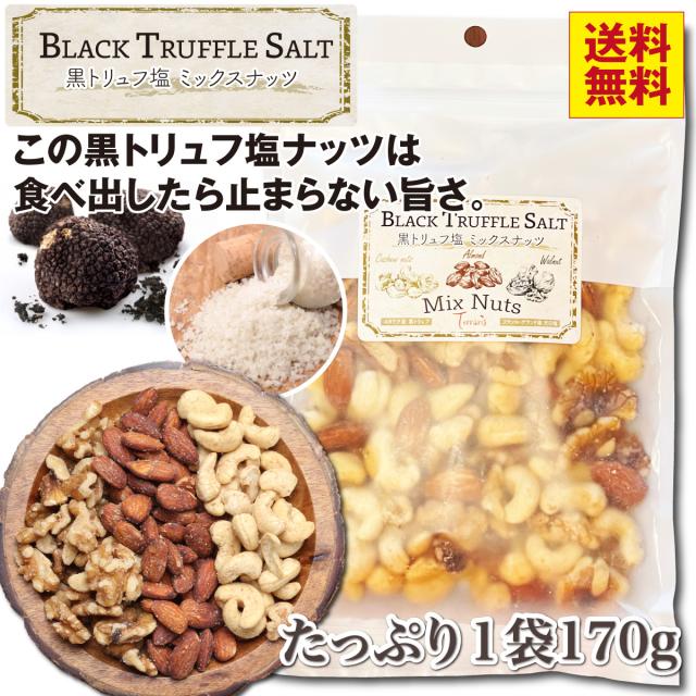 おつまみ 3種の黒トリュフ塩 ミックスナッツ ナッツ 有塩 大容量 お菓子 ビール ウイスキー おつまみ ワイン つまみ ギフト 酒のつまみ カシューナッツ アーモンド くるみ 素焼き 家飲み プチギフト プレゼント【黒トリュフ塩ミックスナッツ170g】