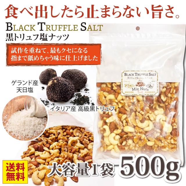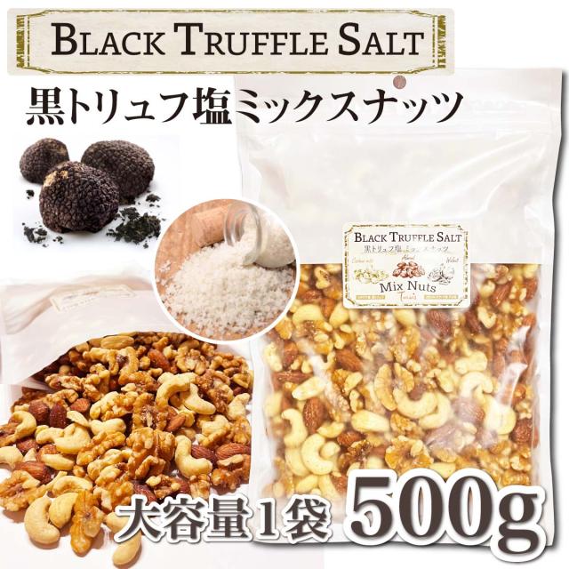 おつまみ 黒トリュフ塩 素焼き ミックスナッツ 塩味 ナッツ 有塩 大容量 トリュフ塩 お菓子 カシューナッツ アーモンド くるみ 豆 晩酌 塩 ナッツ類 素焼き ビール つまみ 酒のつまみ プチギフト プレゼント【贅沢黒トリュフ塩ミックスナッツ500g】