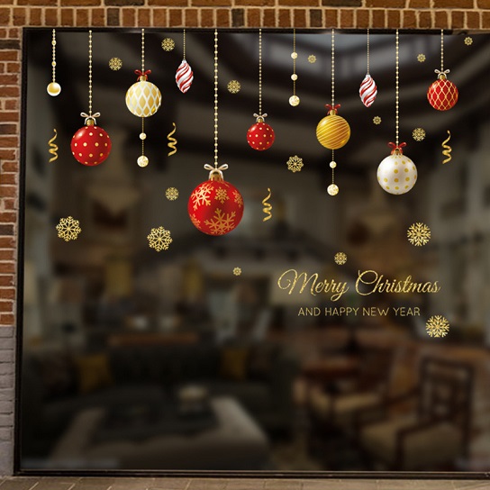 ウォールステッカー クリスマス 吊り下げ オーナメント デコシール 飾り玉 英語 雪の結晶 室内壁 店舗 オフィス 窓ガラス 送料無料