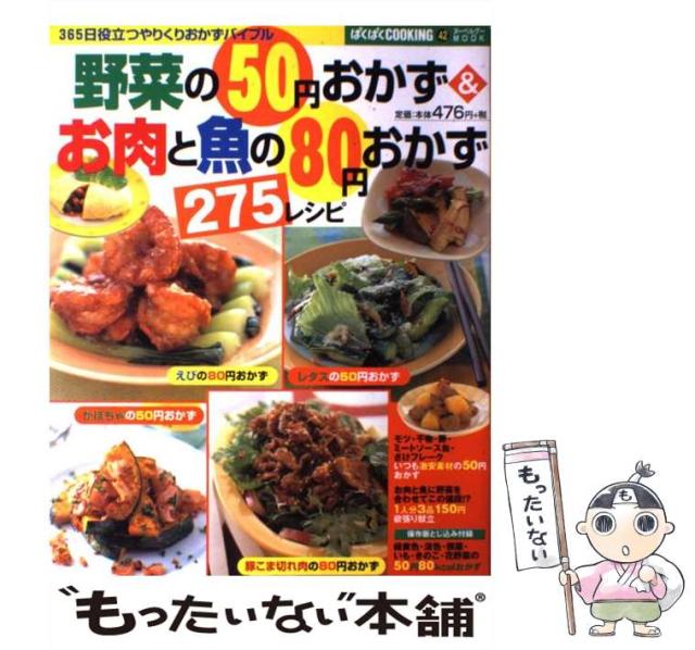 商品名:【中古】 野菜の50円おかず&お肉と魚の80円おかず275レシピ 365日役立つやりくりおかずバイブル (ヌーベルグーmook ぱくぱくcooking 42) / インデックス・マガジ / [ムック]【メール便送料無料】