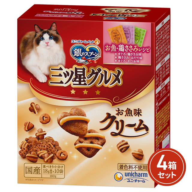 銀のスプーン 三ツ星グルメ お魚味クリーム お魚・鶏ささみレシピ 3種のアソート 180g×4箱セット キャットフード まとめ買い