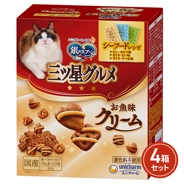 銀のスプーン 三ツ星グルメ お魚味クリーム シーフードレシピ 3種のアソート 180g×4箱セット ユニチャーム 猫 キャットフード まとめ買い