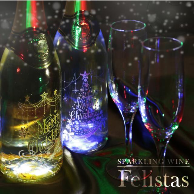 大人気のスパークリングワインフェリスタスからクリスマス限定オリジナルデザインボトルが登場!6色から選べるLEDライトはゴージャス感満載!
