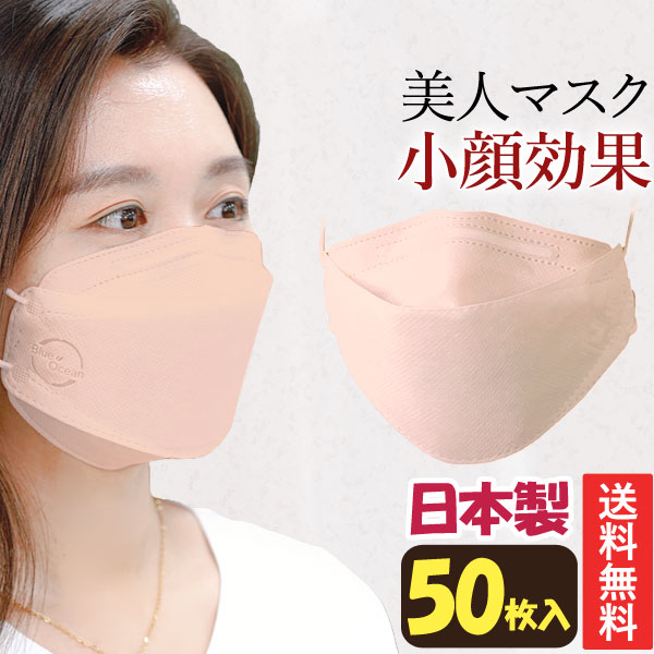 日本製 ダイヤモンド3Dマスク 立体型 BLUE OCEAN 美人(ピンク)(50枚(5枚入×10個セット))【新井】【送料無料】