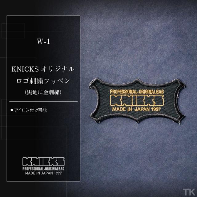 KNICKS ニックス オリジナルロゴ刺繍ワッペン アイロン取付 W-1BG 黒地に金刺繍 ネコポス 即日出荷 nx-w-1-g
